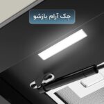 ویژگی جک آرام بازشو نیز تجربه کاربری بسیار راحتی ایجاد میکند؛ بهطوریکه درب شیشهای هود به نرمی و بدون ضربه باز و بسته میشود و از آسیب به شیشه یا کابینت جلوگیری میکند.